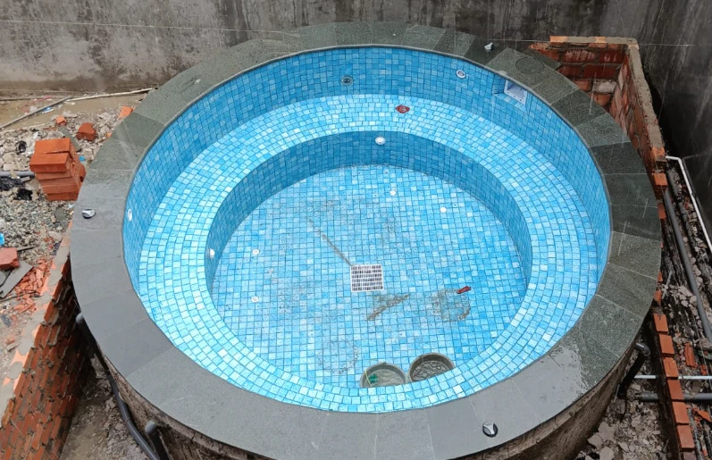 Struktur kolam hydroterapi harus mampu menahan beban air hangat secara terus-menerus tanpa risiko keretakan. Kami menggunakan teknik pembesian dan beton standar tinggi agar badan kolam tetap stabil.